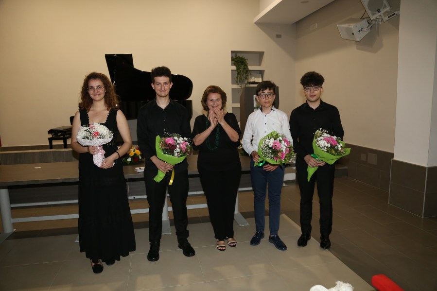 bella foto con i quattro pianisti del Concerto inaugurale